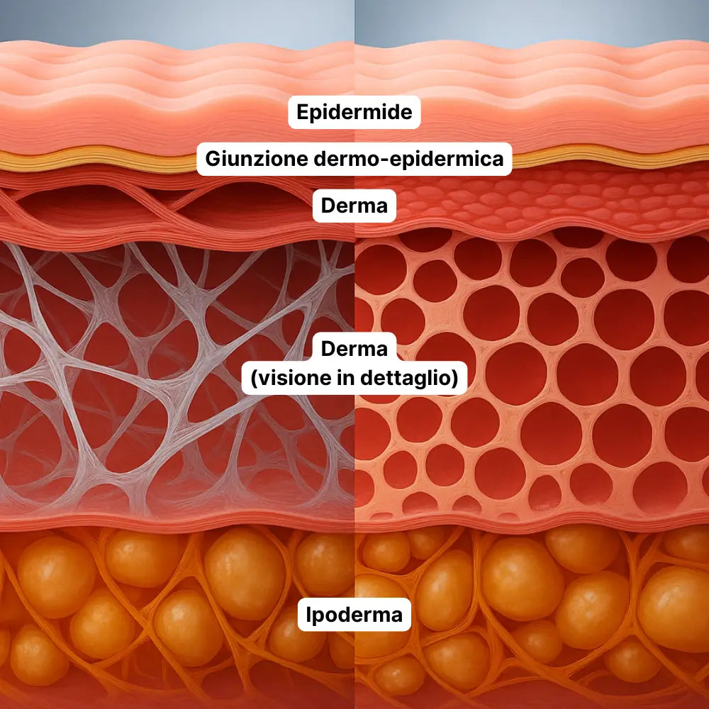 Generalmente si osservano i primi risultati entro 6–8 settimane, soprattutto in termini di elasticità e idratazione cutanea.