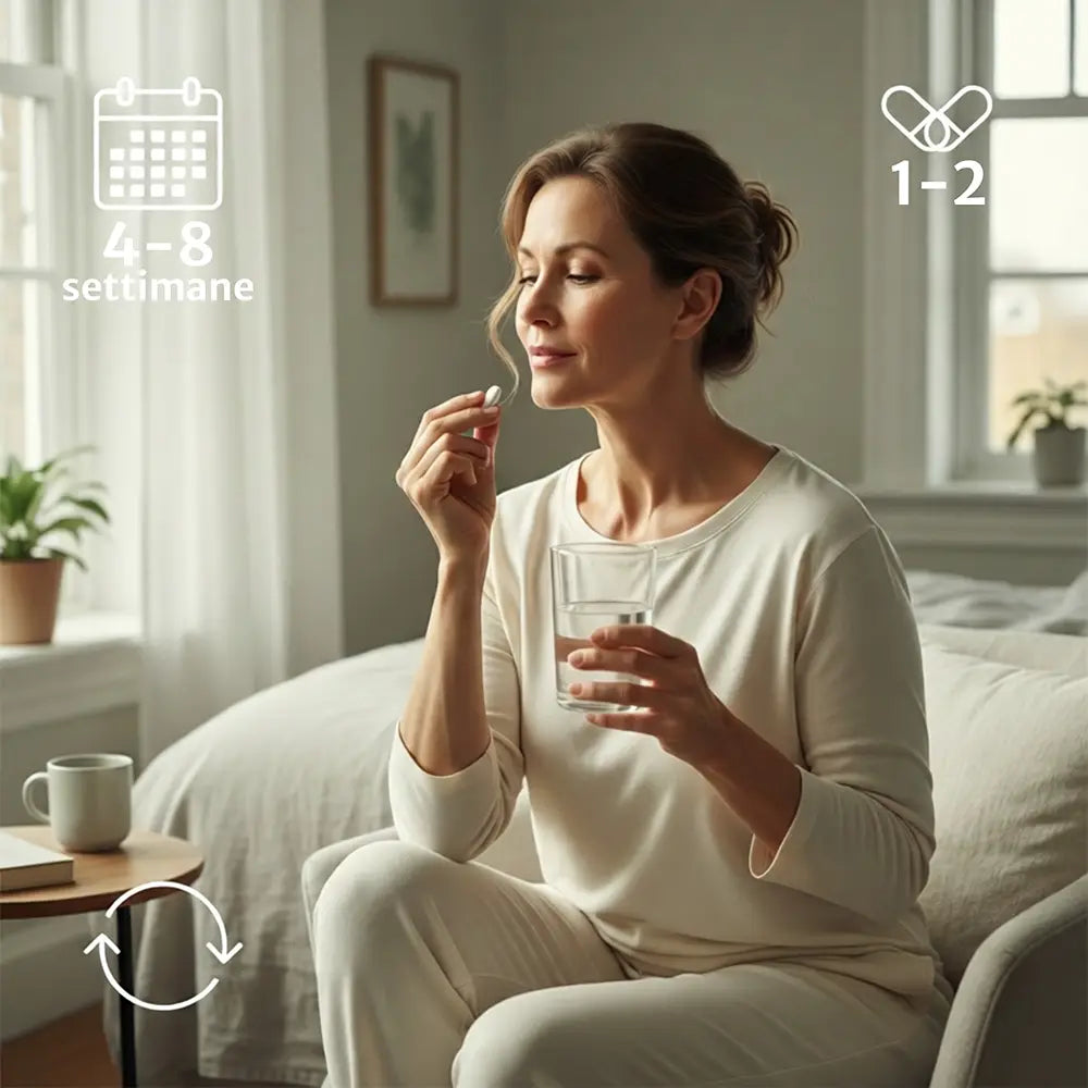 Per ottenere un effetto ottimale, si consiglia un periodo di assunzione di almeno 4–8 settimane, salvo diversa indicazione del professionista sanitario.